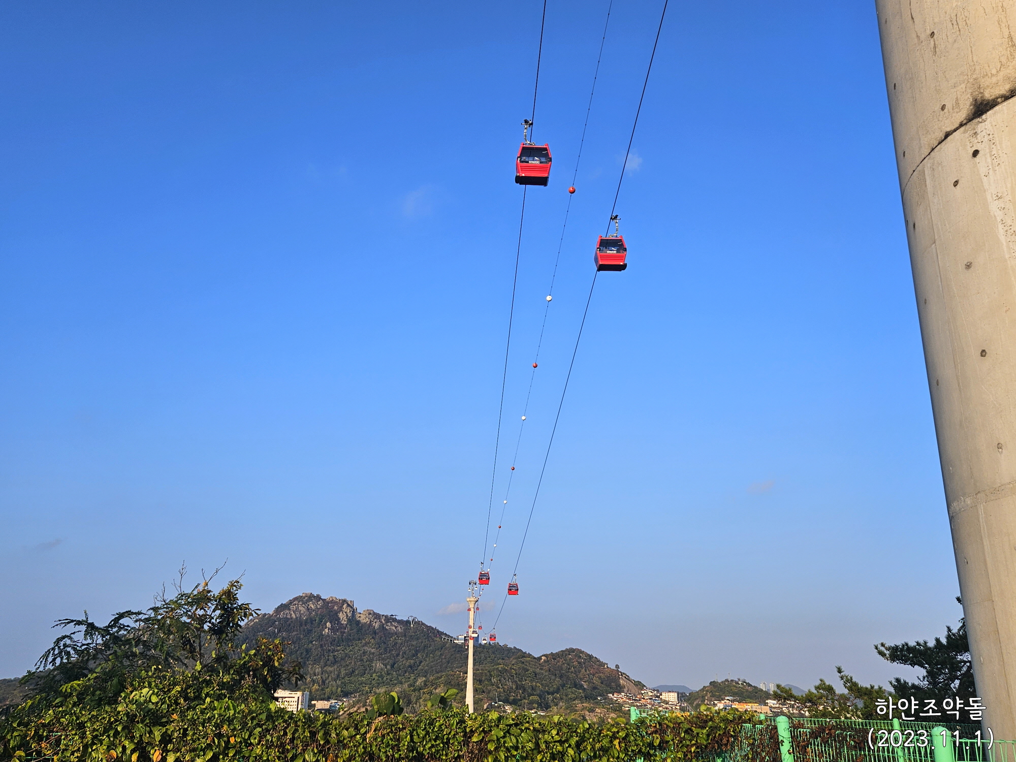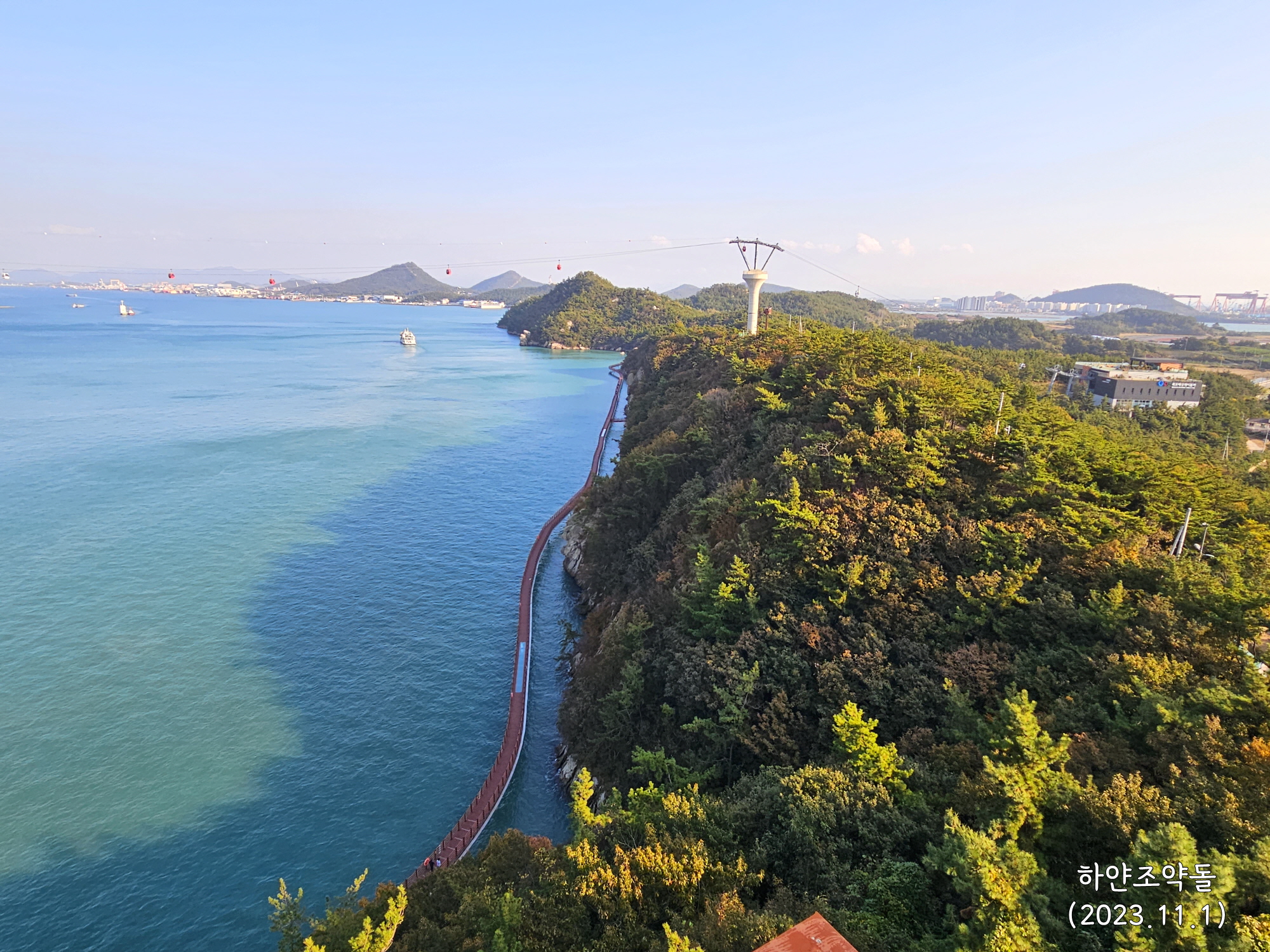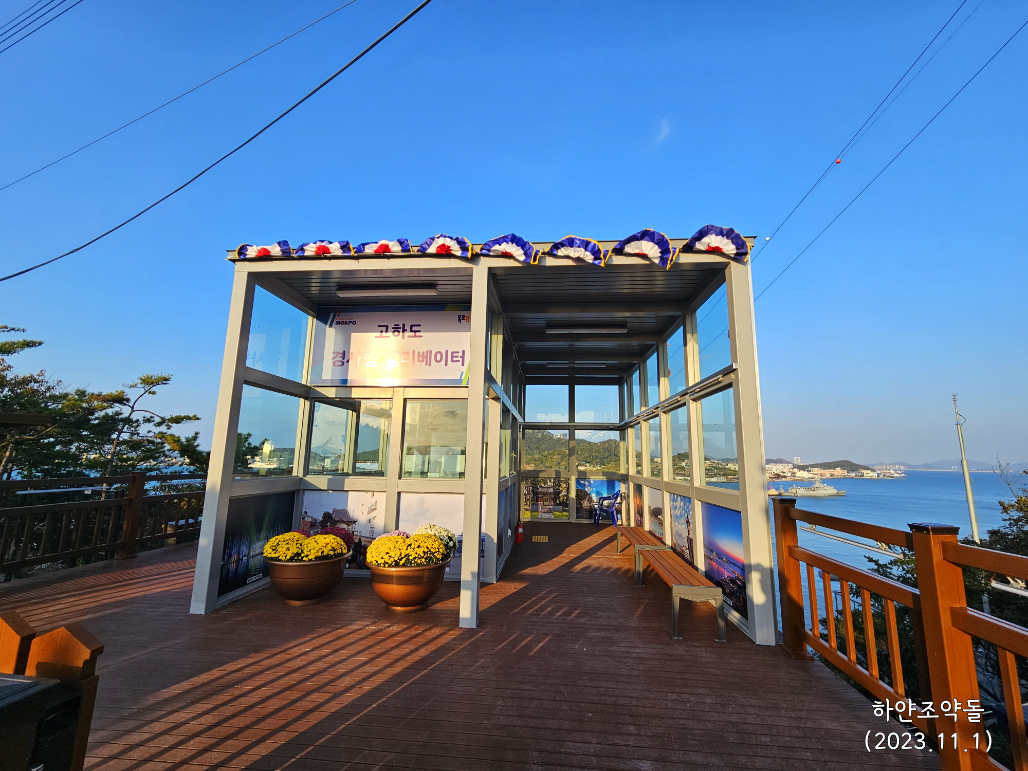 오전 수업을 하고 온 터라 시간이 많지 않아 해상케이블카 북항승강장에서 2시간의 자유시간이 주어졌다. 우리 일행처럼 단체관광객들은 대부분 크리스털캐빈 표를 가지고 있어 줄이 길었다. 마음 급한 몇몇 샘들과 일반캐빈을 타고 고하도승강장에 20여 분만에 도착했다. 승장장에서 고하도전망대까지는 150 계단을 걸어 올라가야 한다.
