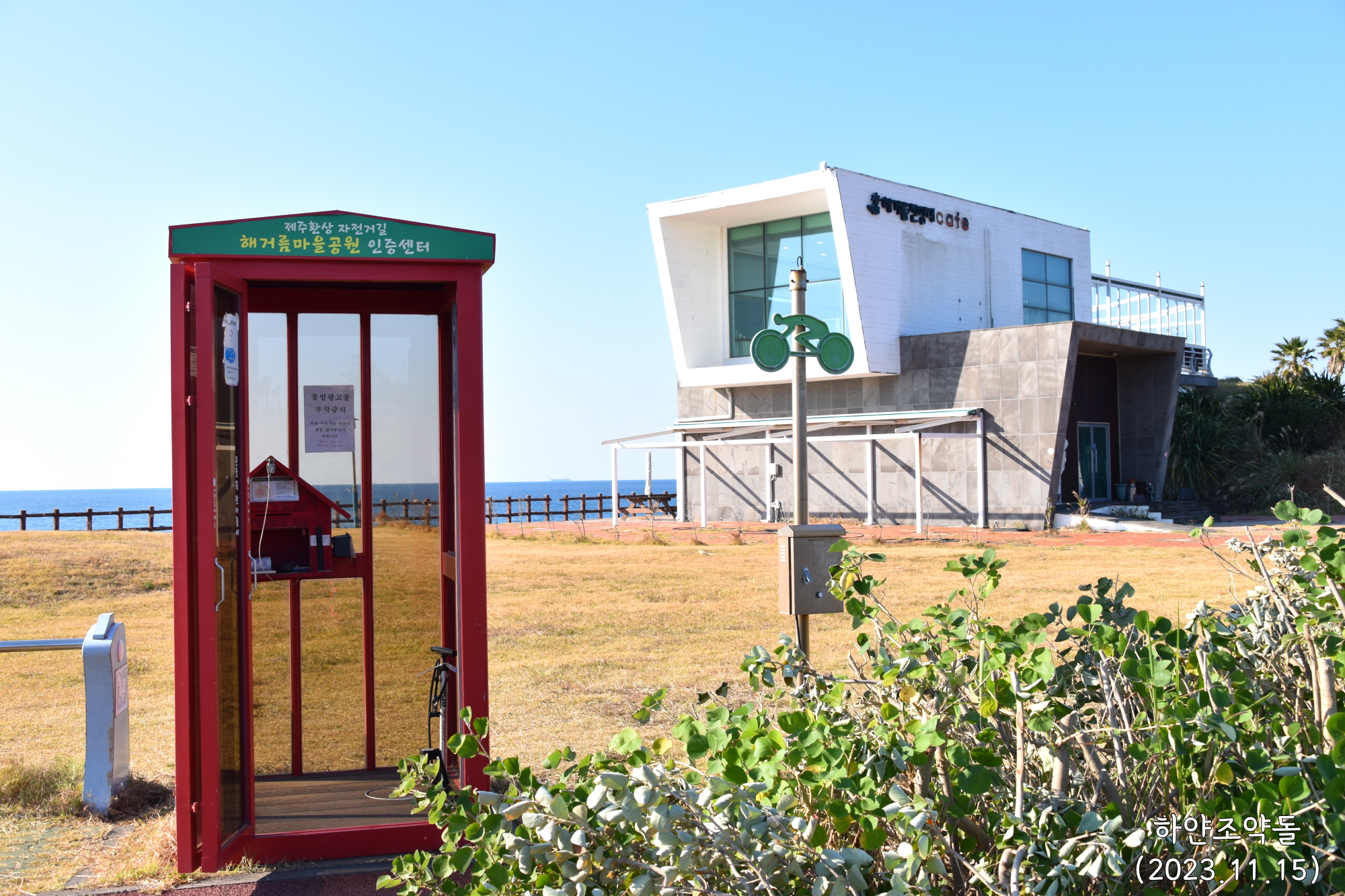 12시 30분 '다락쉼터 인증센터'에 도착했다. 멀리 파란 바다가 감싸고 있는 애월읍이 보인다. 평일이라 자전거를 타는 사람은 거의 만나지 못했다. 음악을 들으며 눈에 담고 싶은 풍경이 나타나면 사진에 담았다.