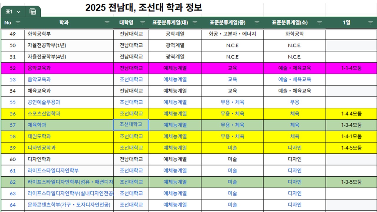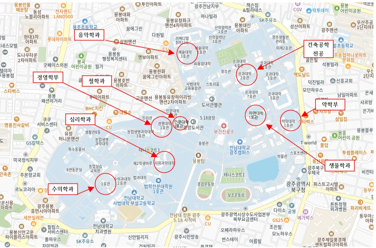 학과 탐방 대상 대학은 인솔과 이동의 용이성을 고려하여 전남대학교와 조선대학교로 한정했다. 학생들은 '대학 알리미' 사이트를 활용하여 자신들의 관심사를 토대로 어떤 학과를 탐방할 것인지 모둠별로 결정했다.