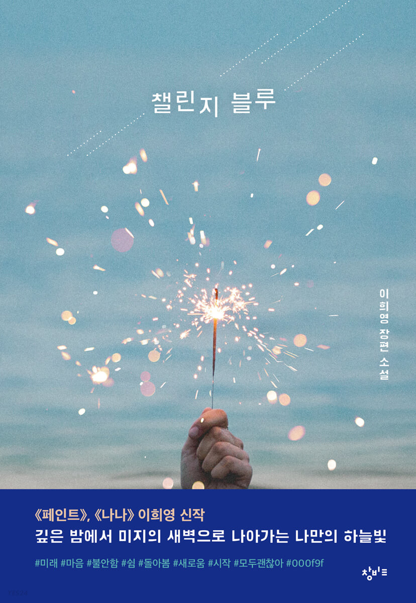 “챌린지 블루”. 청소년에 대한 작가의 애정을 알기에 이 책도 청소년들의 도전을 다룬 책인가 싶었다. 흐릿한 바다를 배경으로 폭죽이 터지는 것도 관련 있는 것 같고.