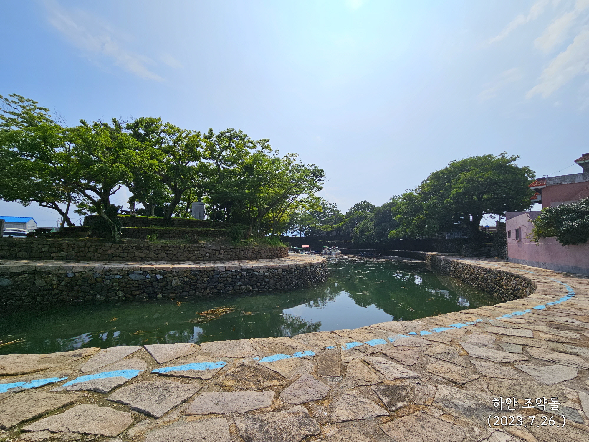 '사천 해전'은 거북선이 최초로 활용된 전투였다고 한다. 그래서 노산공원에도, 이곳 대방진 굴항에도 이순신 장군의 동상이 있다. 자료를 찾다 보면 임진왜란 때 이곳에 전선을 숨기기도 했다고 하는데, 안내문에 따르면 그런 이야기가 나오지 않는다. 왜구의 노략질을 막으려고 고려 시대 때 설치한 군항이며, 순조 때 지금과 같이 활처럼 굽은 모양의 굴항 '대방선진'을 설치했다고 한다. 지금 볼 수 있는 시설은 현대에 복원한 것이라고 하는데, 과거 군항의 모습을 볼 수 있는 곳이다.